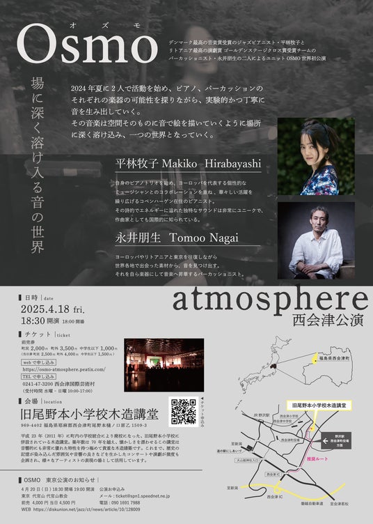 デンマーク最高の音楽賞受賞のジャズピアニスト・平林牧子と、リトアニア最高の演劇賞ゴールデンステージクロス賞受賞チームのパーカッショニスト・永井朋生の二人が結成したユニットOsmo結成、世界初公演