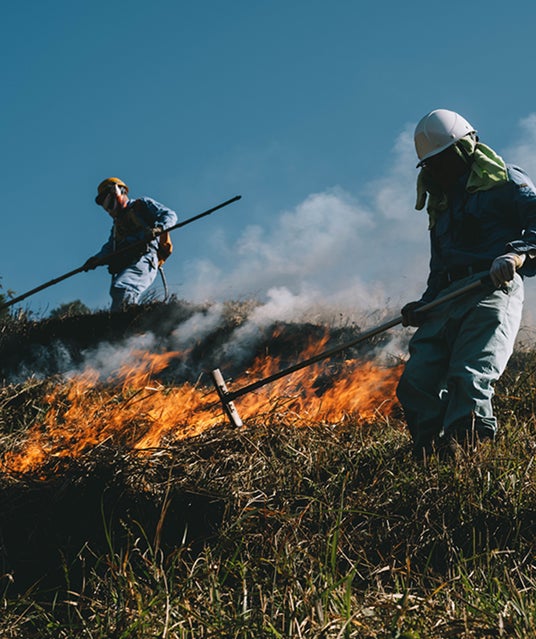 その美しい姿で私たちを魅了する阿蘇の草原は、約1万3千年前、縄文時代から存在したと言われています。本来、日本の気候では、自然の力だけで草原が維持されることはありません。自然に関わり、恵みをいただきながら、私たち日本人はこれまで暮らしてきました。つまり、人と自然が手をとり合い、育んできた場所が阿蘇の草原なのです。しかし、農業形態や生活様式の変化に伴い、草原と人の暮らしは遠いものになり、その結果阿蘇の草原は、次第に減少しており、いずれ消滅の危機を迎えるともいわれています。その草原を守るために「阿蘇草原再生プロジェクト」は立ち上がりました。阿蘇の草原を守る取り組みとして、保全活動に関する寄付額の増加や野焼き支援ボランティアの増加を目的に、草原の新たな価値創造や効果的な情報発信などのプロモーション事業を行っております。