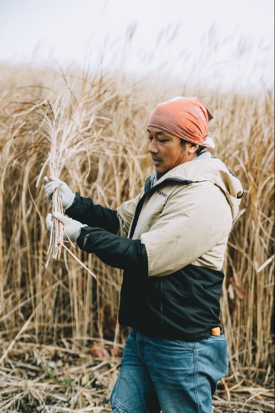今回このプロダクト制作では、全国の茅の産地の中でも大部分を占める熊本県・阿蘇の草原の茅を使用しています。阿蘇の草原も後継者不足などの課題により、年々その面積は減少しています。阿蘇グリーンストックでは、資源としての茅の有効活用と草原保全のための取り組みとして、今後も茅を使用したプロダクト開発に取り組んでまいります。