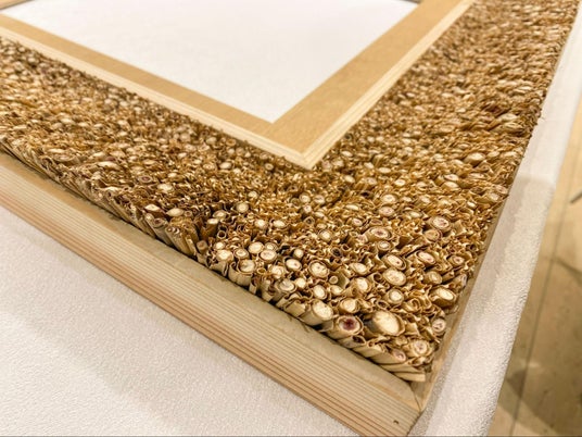 商品特徴:放射状に葺かれた茅の断面が美しいフレーム(額縁)見る角度によって違った表情を楽しむことができます。写真やアートの額装にも使用できます。