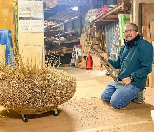 茅葺き屋根の技術により制作された茅ソファ(株式会社Earth Building制作)
