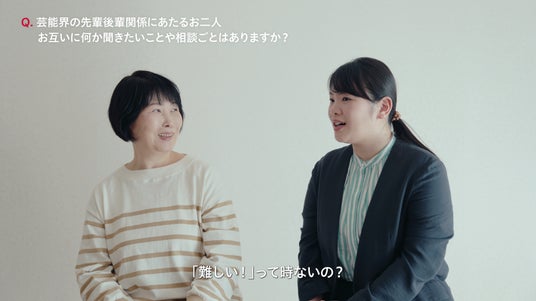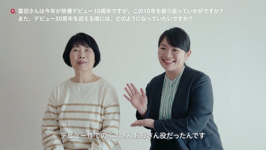 また、本CMの公開を記念して、撮影の裏側を映したメイキング動画と、富田さん、池谷さんの特別インタビューも公開します。富田さんのデビュー作でも母娘役を演じ、お互いに下の名前で呼び合うほど仲の良いお二人。対談形式で行われた今回のインタビューでは、世代間ギャップを感じる瞬間や、お互いにデビュー30周年、10周年と節目を迎えての感想と将来の目標、お互いに質問してみたいことについてうかがいました。