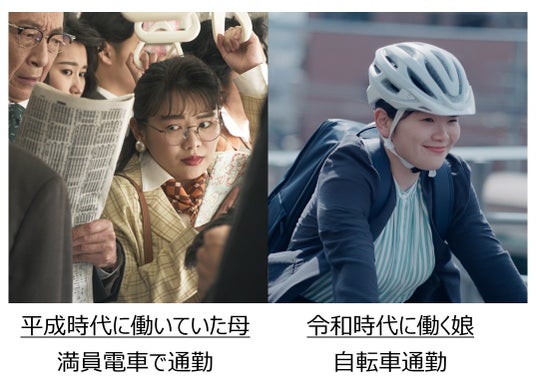 本CMでは、令和の時代に働く娘と、平成の時代に働いていた母親の姿を通して、今と昔の“当たり前”の違いを描いています。また、多くの人々を悩ませる、キャリアと家庭の両立や人生の選択を、時代の変容と共に描きました。娘役を富田望生さん、母親役を池谷のぶえさんが演じます。二人のリアリティ溢れる演技にご注目ください。