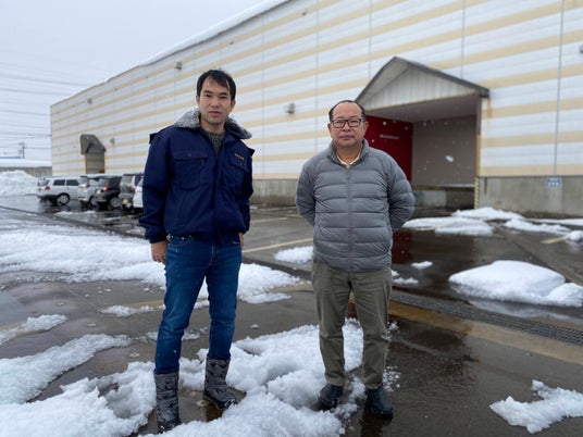 当社代表(写真左)と、父親であり実家の倉庫業の創業者である田村氏(写真右)