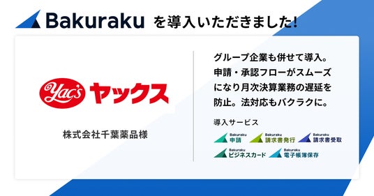 この度、千葉県・茨城県を中心に「ヤックスドラッグ」「アタック5」をはじめ調剤薬局、在宅医療などさまざまな事業を展開する千葉薬品に「バクラク申請」「バクラク請求書発行」「バクラク請求書受取」「バクラクビジネスカード」「バクラク電子帳簿保存」が導入されました。グループ企業も併せての導入となります。