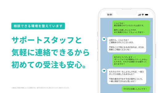 初心者でも安心して受注できるよう、スタッフとの個別相談が可能なサポート体制を整えています。