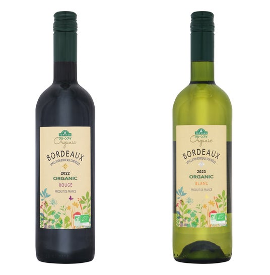 トップバリュ グリーンアイオーガニック オーガニック AOP ボルドー 左からルージュ、ブラン