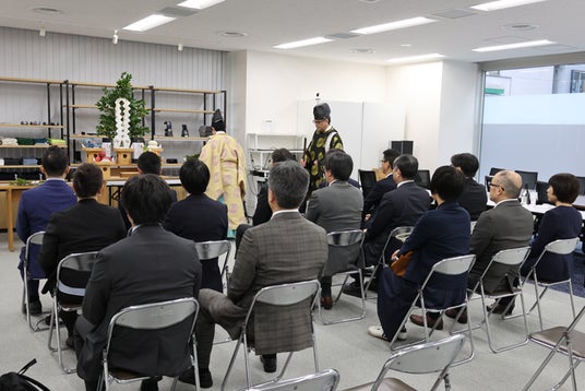 東京支社の移転およびショールーム開設にあたり、3月3日開所式が行われました。TSS東京支社が移転した千代田区神田の氏神様である神田明神の神職様にお越しいただき執り行われ、TSSの下川社長をはじめとする関係者16人が参加し、従業員の安全と事業の繁栄が祈願されました。その後、下川社長より挨拶があり、その後DTSの取締役常務執行役員の浅見伊佐夫より祝辞が送られました。