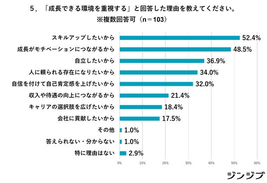 5.「成長できる環境を重視する」と回答した理由を教えてください。※複数回答可(n=103)