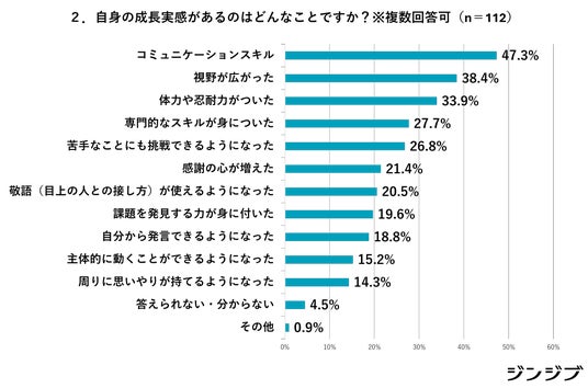 2.自身の成長実感があるのはどんなことですか?※複数回答可(n=112)