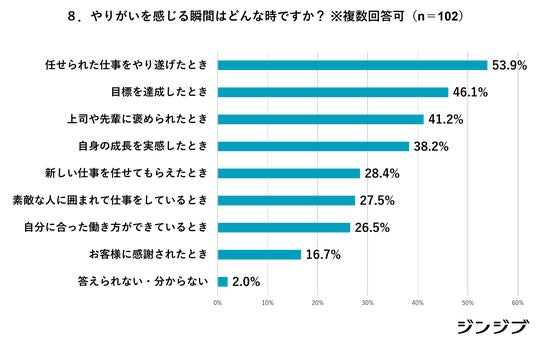 8.やりがいを感じる瞬間はどんな時ですか?※複数回答可(n=102)
