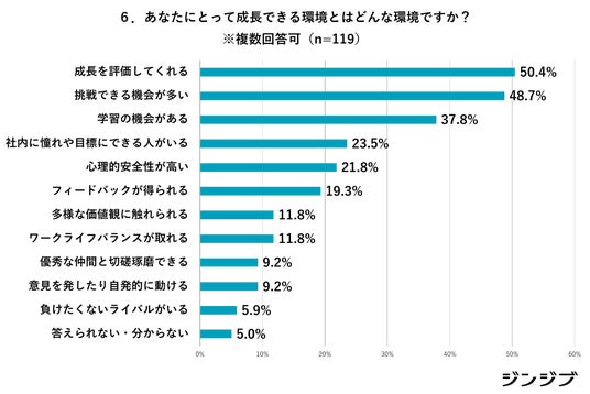 6.あなたにとって成長できる環境とはどんな環境ですか?※複数回答可(n=119)