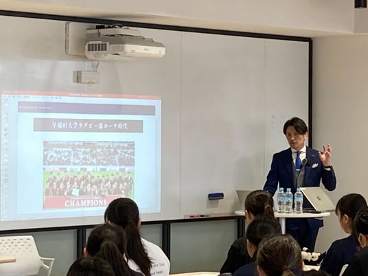元ラグビー日本代表で株式会社識学に所属している後藤翔太が東洋英和女学院のバレーボール部・バスケットボール部の生徒にチームという「組織」を強くするための講演を行いました。