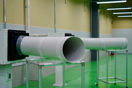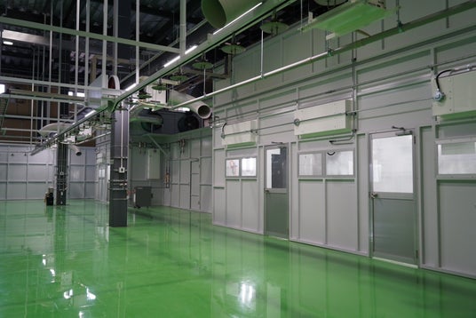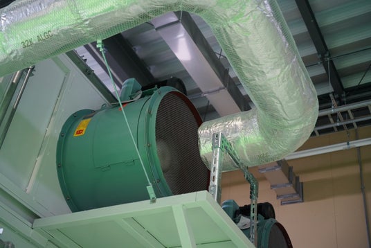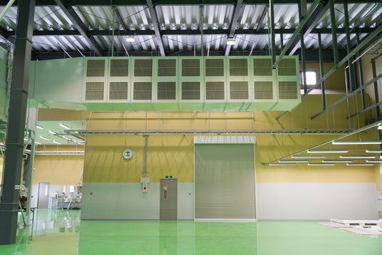 大型の給気装置を設置することで工場内の湿度を一定にして、ちりや埃等の舞い上がりを防止