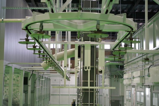 最新の吊り上げ自動化ラインで生産性大幅アップ。工場内の働きやすさにも配慮。