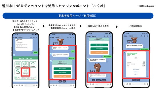 ほとんどの住民が、今、すぐに利用できるスマホ市役所「GovTech Express」を提供する株式会社Bot Express(本社:東京都港区、代表取締役:中嶋 一樹、以下 Bot Express)は、富山県滑川市(市長:水野 達夫)がGovTech Expressを活用し、滑川市LINE公式アカウントから高齢者・障がい者福祉利用券の申請・管理・利用を完結できるデジタル版福祉利用券「ふくポ」を4月1日より開始したことをお知らせします。
