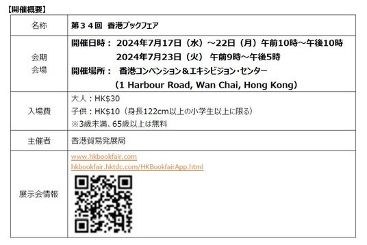 香港貿易発展局(HKTDC)主催の第34回「香港ブックフェア」は、7月17日から23日まで香港コンベンション&エキシビション・センターにて開催されます。香港最大規模のBtoC展示会として知られる本展は、同時開催の「香港スポーツ&レジャーエキスポ」と「ワールド・オブ・スナック」には、コロナ禍後最大規模となる約760の出展者が参加します。著名作家のセミナーや書籍の発売など600以上の各種文化イベントを会場内外で開催し、書籍業界を盛り上げます。昨年は100万人以上が来場し、活況を呈しました。日本からは、在香港日本国総領事館、日本政府観光局(JNTO)、2025年日本国際博覧会協会をはじめとした政府機関、業界団体のほか、北は北海道から南は沖縄県まで地方自治体など合計26の出展者が、参加します。官民一体となって日本各地の豊かな伝統・自然、最新の観光情報などの魅力を発信します。