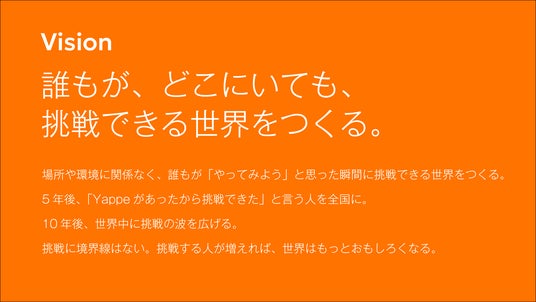 どこに住んでいても、どんな立場にいても、やってみたいと思った瞬間にその一歩を踏み出せること。Yappeは、それを当たり前にしたいと考えています。