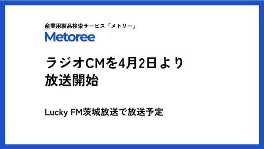 ZAZA株式会社(代表取締役:永津 豪、所在地:愛知県名古屋市)が運営する産業用製品検索サービス「Metoree(メトリー)」(https://metoree.com/)は、サービスのさらなる認知拡大を目的に、2025年4月2日にLucky FM茨城放送にてラジオCMを放送いたします。