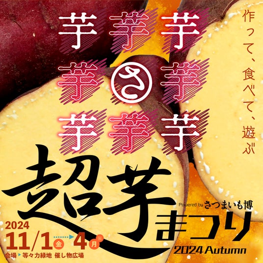 さつまいも博実行委員会(代表:石原健司、東京都新宿区西新宿7-7-26)では、2024年11月1日(金)より4日(月・祝)まで、川崎市・等々力緑地 催し物広場(住所:〒211-0052 神奈川県川崎市中原区等々力1)にて「超芋まつり 作って、食べて、遊ぶさつまいも博」を開催することが決定いたしましたので、お知らせいたします。