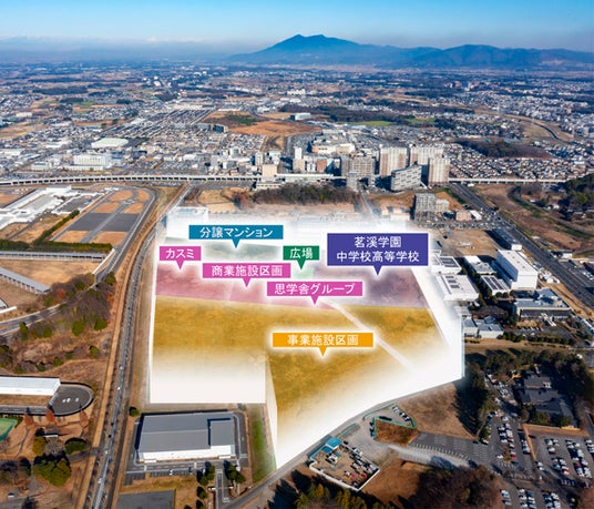 あわせて、2029年に創立50周年を迎える茗溪(めいけい)学園中学校高等学校がつくば市稲荷前より移転する計画で、校舎や屋内運動場、人工芝のグラウンドに加え、学校に隣接した学生寮などを備え、2029年春頃に開校する予定です。