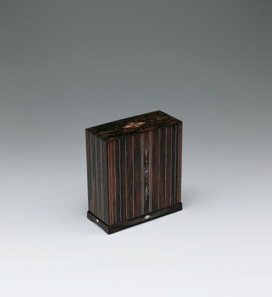 第65回日本伝統工芸展 東京都知事賞 「黒柿蘇芳染嵌荘箱『西方の風』」