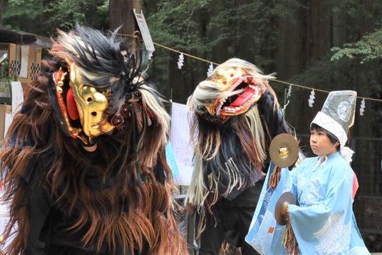 神事として2頭で舞う宮入(令和5年10月 宇原岩田神社)
