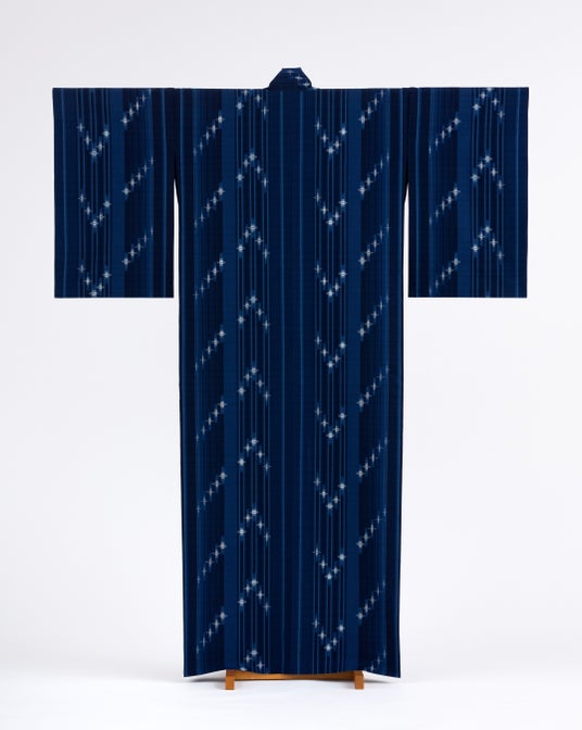 第59回日本伝統工芸展入選作品 平成24年制作 木綿 琉球藍 絣織着物「潮」