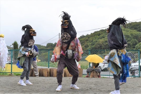 福島県浜通りに位置する双葉郡葛尾(かつらお)村。上葛尾・下葛尾に伝わる「葛尾三匹獅子舞」は、東日本一帯に伝わる三匹獅子舞の一つです。この芸能は、元禄時代、「葛尾大尽」といわれた松本三九郎が再興したとされる獅子舞であり、古くは牛頭天王が祀られていた日山神社に奉納され、五穀豊穣や疫病退散などを祈念する行事として受け継がれてきました。「庭入り」から「納め舞」まで、12の舞で構成されており、雄獅子(太郎・次郎)と雌獅子の他に、岡崎と呼ばれる道化が登場します。東日本大震災以降は仮設住宅で舞うなど、困難の中でも地域の復興と密接に関わり、懸命な努力を重ね、今日まで受け継いできました。地元の誇るべき伝統文化を絶やさないため、弛まぬ努力と、情熱に支えられて受け継がれた獅子の妙技が評価され、今回の受賞となりました。