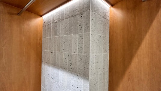 写真左側のクローゼットにもamuca(R)タイルが活用されている