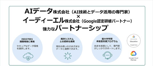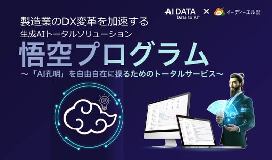 企業データとAIの利活用カンパニー、AIデータ株式会社(本社:東京都港区、代表取締役社長 佐々木隆仁、以下AIデータ)は、イーディーエル株式会社(本社:茨城県つくば市、代表取締役:平塚知真子、以下イーディーエル)と、製造業のDX(デジタルトランスフォーメーション)を加速させる生成AI活用トータルソリューション「悟空プログラム」を共同で開発し、提供を開始することを発表いたします。
