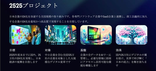 「悟空プログラム」は、2025年度末までに国内25万社のDX化を目指す「2525プロジェクト」を強力にバックアップします。日本の製造業が再び世界で存在感を発揮できるよう、現場の変革と競争力の向上を支援します。