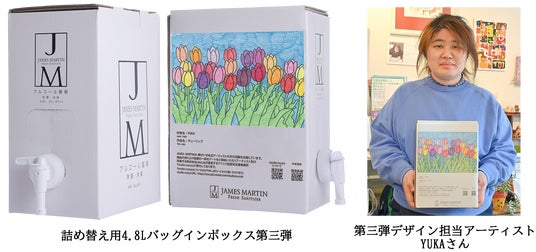 株式会社ファーストコレクション*(東京都港区南青山 代表取締役:竹内 伸介)が運営する、除菌・消臭用アルコール製剤をはじめとする衛生商材ブランド「ジェームズマーティン」は、環境に配慮した紙製リフィルアイテム「ジェームズマーティン フレッシュサニタイザー 詰め替え用4.8L バッグインボックス」の第3弾デザインの出荷を2025年4月7日(月)より順次開始いたします。