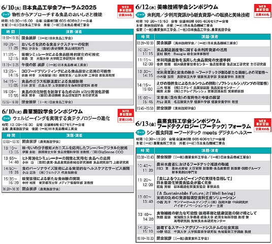 4つの食品関連学会が食品製造開発につながるテーマで講演を行います。