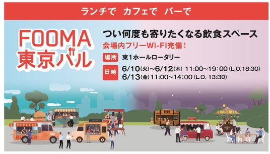3回目の開催となる食のイベント「FOOMA東京バル」では、江東区の人気店による地元の食文化が楽しめるほか、海藻やきのこなど環境に優しく栄養満点なサステナブル食材「持続可能な未来の食材50」を取り入れた特別メニューを、多彩なキッチンカーがお届けします。