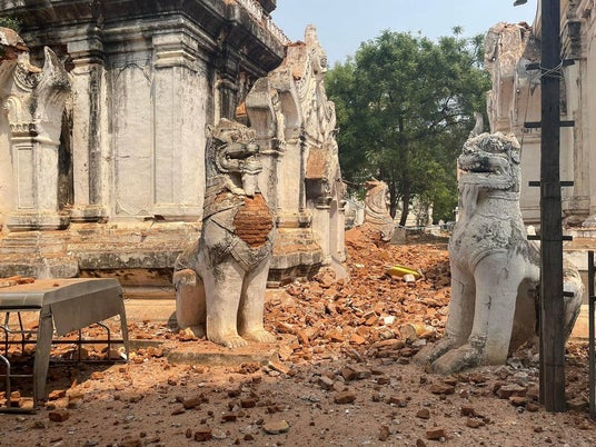 2025年3月28日、震災直後のマンダレーで倒壊した僧院の様子
