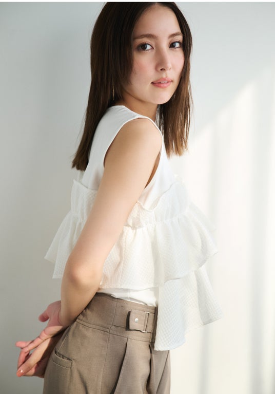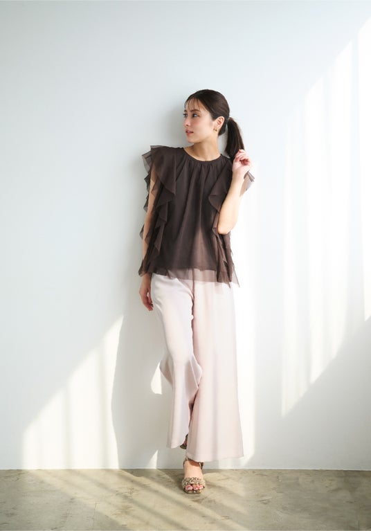 7. 愛してやまないフリルアイテムはワイドパンツを合わせてラフに仕上げたい