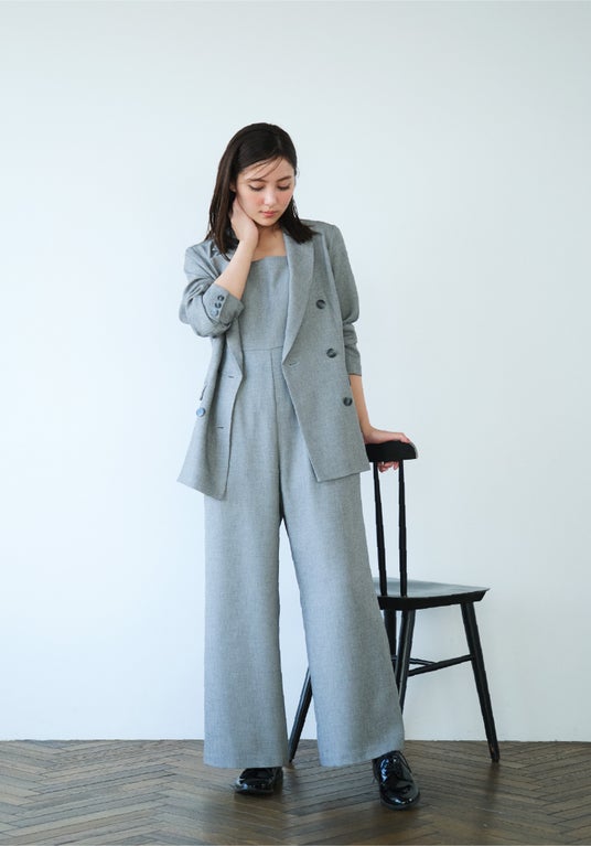3. ジャケットにレディなオールインワン合わせが新鮮。今年顔のセットアップ