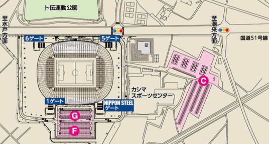 ※スタジアム正面(G・F)駐車場をご利用ください(満車の場合はC駐車場をご利用ください)。
