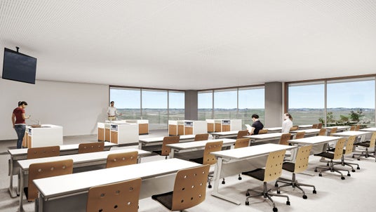 また、当該施設では「栄養ケアセミナールーム」を新設し、本学の強化指定クラブの選手などを対象としたスポーツ栄養指導に加え、地域の方を招いた栄養に関するセミナーの開催を計画しています。加えて、1階にはピロティとラウンジを設け、学生や教職員、地域の方々など、様々な人が交流できる空間を備えています。