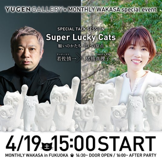 若佐慎一個展「Super Lucky Cats」スペシャルイベントとして、2025年4月19日(土)15時よりYUGEN Gallery FUKUOKAにてトークセッション「願いのかたち、思いの原点」MONTHLY WAKASA at YUGEN Gallery FUKUOKAを開催いたします。
