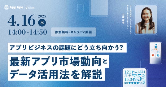 アプリ市場分析サービス「App Ape(アップ・エイプ)」を手がけるフラー株式会社(本社:新潟県新潟市、代表取締役社長:山崎将司、以下「フラー」)は、最新のアプリ市場動向とアプリデータのビジネスへの活用法を解説するセミナーを2025年4月16日(水)に開催します。