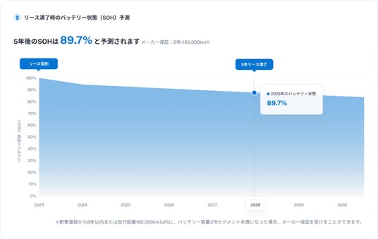これにより、バッテリーの残存性能を反映した適正な残価設定が実現し、新車EV、リユースEVいずれにおいても、購入者の支払い負担を軽減し、EVの販売促進に貢献します。