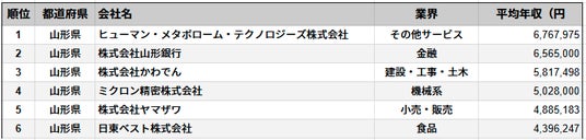 株式会社SalesNow(本社:東京都渋谷区、代表取締役:村岡功規、以下「当社」)は、国内540万社の企業情報を完全網羅した日本最大級のデータベース「SalesNow DB」より、上場企業を対象に山形県に本社を置く企業の平均年収データを集計・分析し、「平均年収ランキング」として公開いたしました。