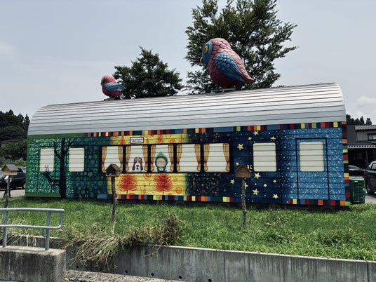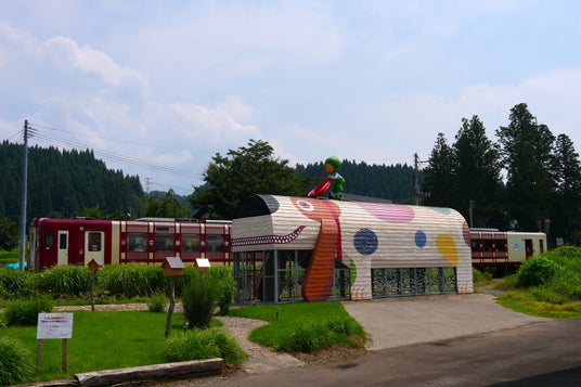 ジミー・リャオによる越後水沢駅の作品。想像力豊かな不思議な旅を始めるきっかけに