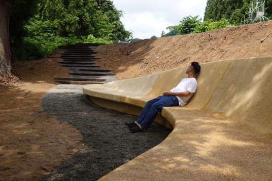 自然の景観に溶け込む田中央工作群の作品、来訪者に休憩と交流の場を提供する