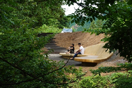 松代城山エリアの「フィールドミュージアム」をより穏やかに過ごせるエリアへ、作品巡りをする足どりを軽くするのは、自然の中で休めるような空白の場所。そんな構想のもと、ゆったりとした時間の流れる空間を長期的に目指していく。建築家黄声遠率いる田中央工作群と日本の建築家田熊隆樹は「大地に抱かれるフィールドミュージアム計画」という10年計画を提案。今年の作品「大地に抱かれるフィールドミュージアム」は、芸術祭の活動拠点である「農舞台」付近の山道に設置され、周囲の景観に溶け込むベンチが製作された。これにより、訪れる観光客や地元の人々が自然の中で芸術を楽しみながら休憩できる。ベンチの表面には、日本から台湾に伝わり、現在は日本ではほとんど見られない洗い出しによって仕上げた石材が用いられ、台湾建築の特徴を体感することができる。