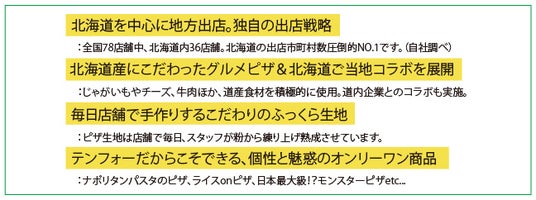 事業内容:宅配ピザチェーン「テンフォー」・宅配肉丼チェーン「第104代肉横綱」・