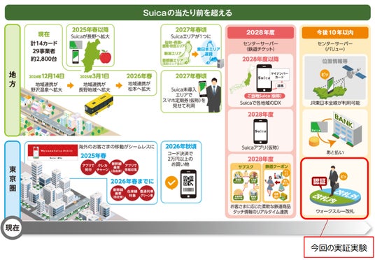 なお、ウォークスルー改札の実現に向けては、顔認証以外にも様々な方式を検討しており、2027年春頃には顔認証以外の技術を活用し、在来線で実証実験を行い、今後10年以内にウォークスルー改札の実現を目指していきます。
