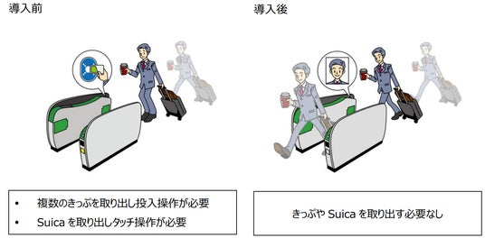 「Suica Renaissance」の推進に向けた取り組みとして、ウォークスルー改札の実現に向けた検討の一環として、きっぷやSuicaを取り出すことなく簡単に改札を通過できるように顔認証改札機の実証実験を行います。今回の実証実験では2種類の顔認証改札機を導入します。